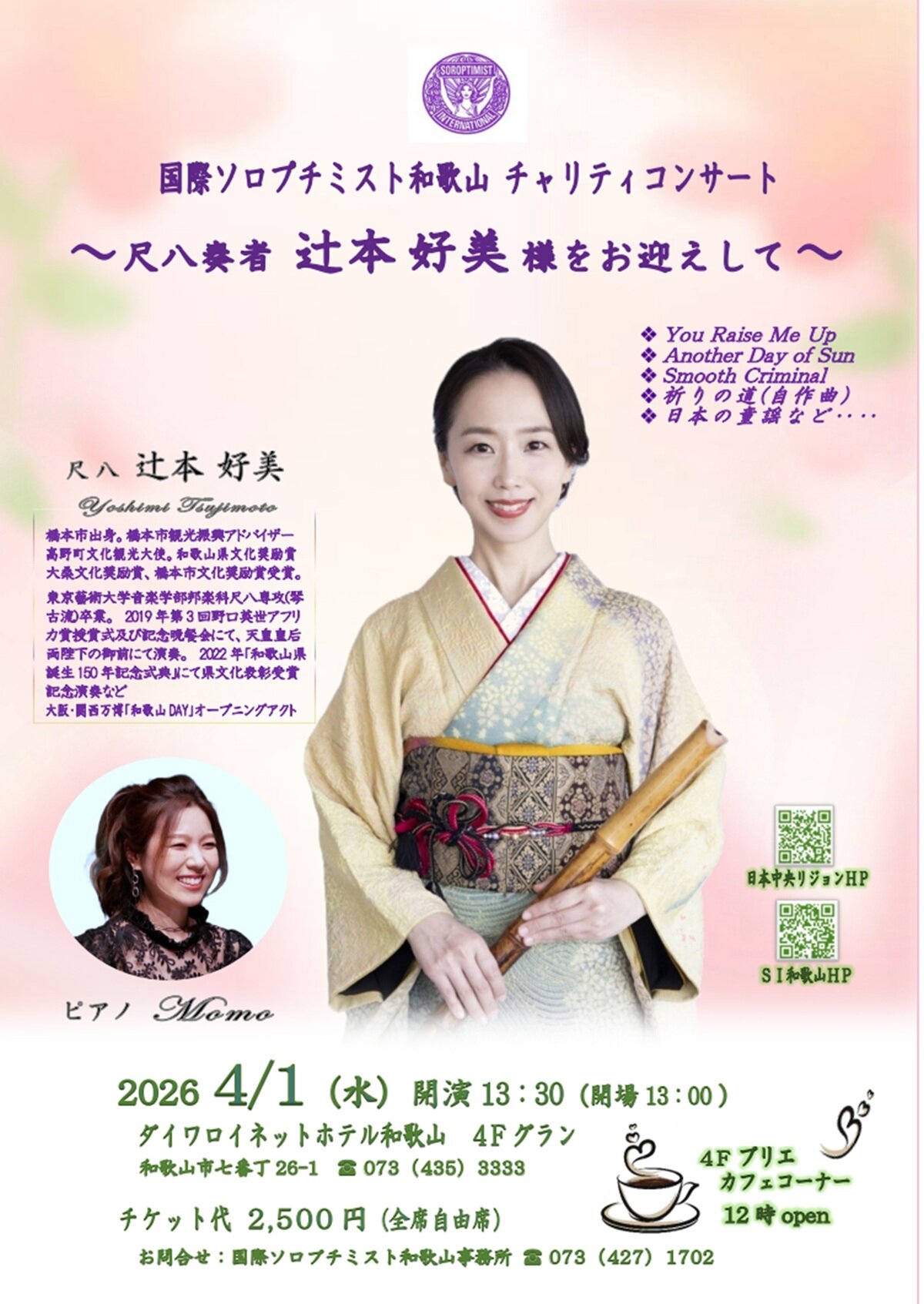 チャリティコンサート≪?尺八奏者 辻本好美様をお迎えして?≫ご案内
