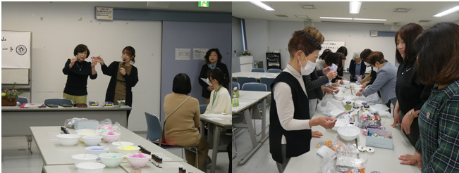 今回は講師として谷口麻衣先生をお招きしてアロマの効用や芳香剤の作り方を教えていただきました。